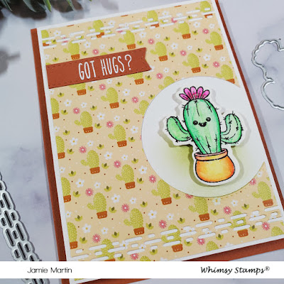 - Stamp the sentiment from the set with Onyx Black VersaMark Ink and glue to the grey die-cut circle.